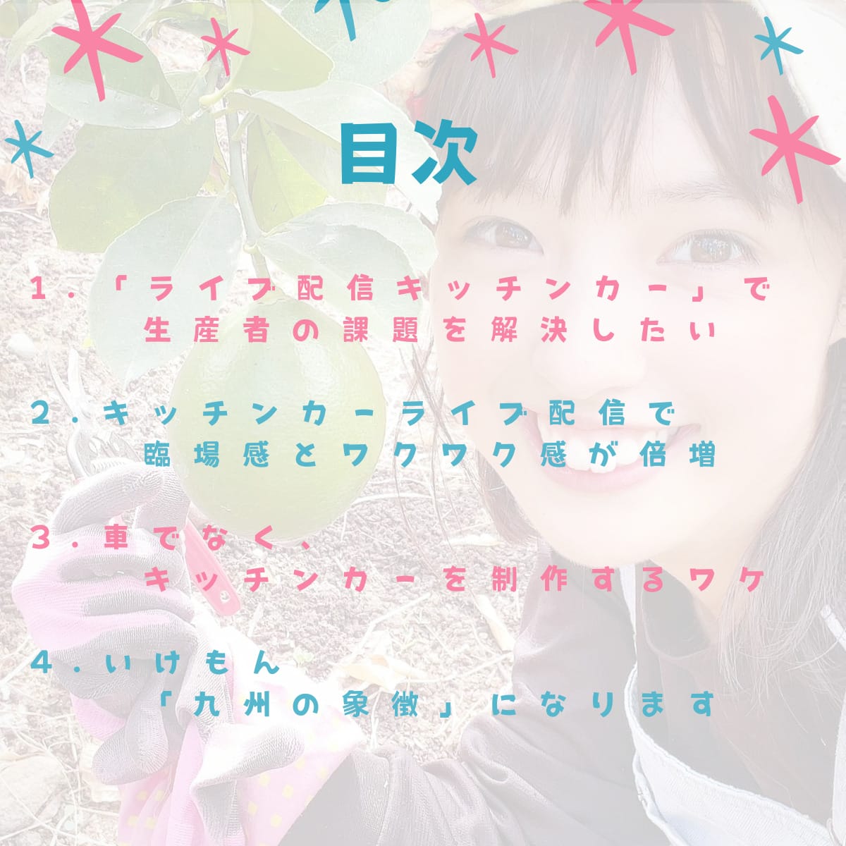 私はアスパラガス農家をしながら、「九州の太陽 いけもん」という名前で九州各地の生産者さんを訪ね、現地からスマートフォンを使ったライブ配信活動もしています。