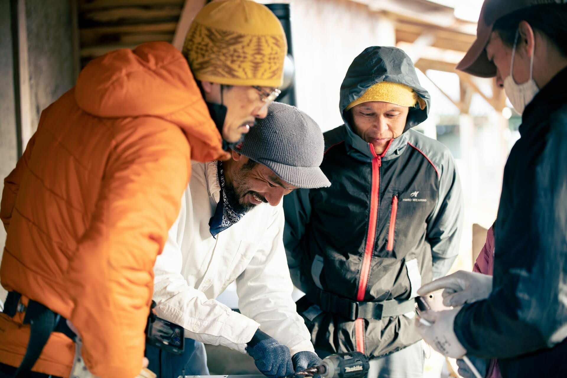 工房に改修する建物は店舗の横にある築80年ほどの古い建物です。太陽光パネルの設置やコンポストトイレのインストールなど、災害時には支援物資の配給や、電気・水・トイレといった最低限必要なものを共有する活動拠点としても利用できるようにデザインして、時間を見つけては改修工事を進めてきました。