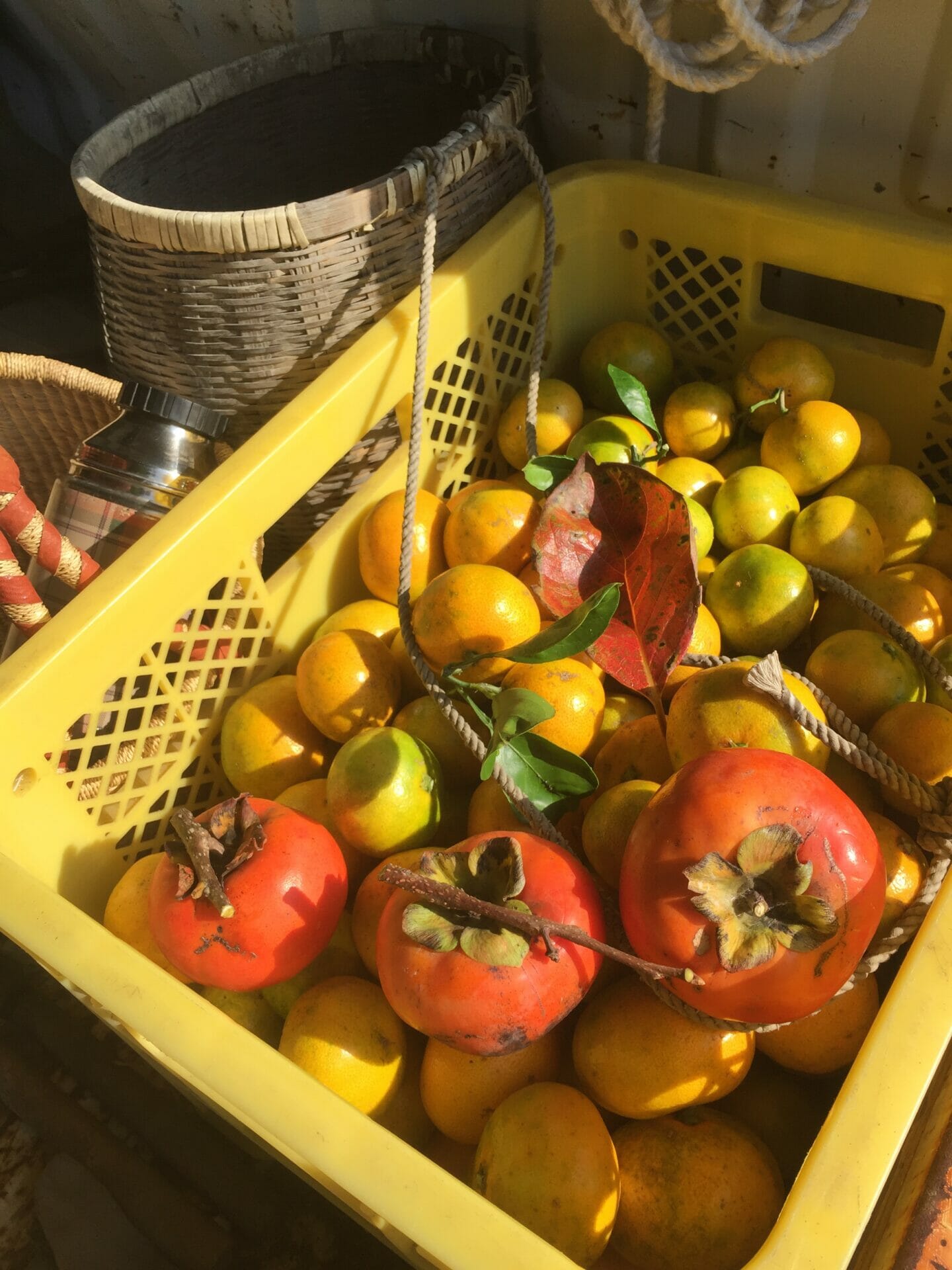 私たちは山の果樹園で蜜柑、八朔、柚、枇杷、梅、栗などの果樹を育てています。今年は新たにレモンやライムの苗木を定植し、少量多品種栽培に加え、ブルーベリー4品種を45本程度育苗し、ブルーベリー畑の整備も進めています。